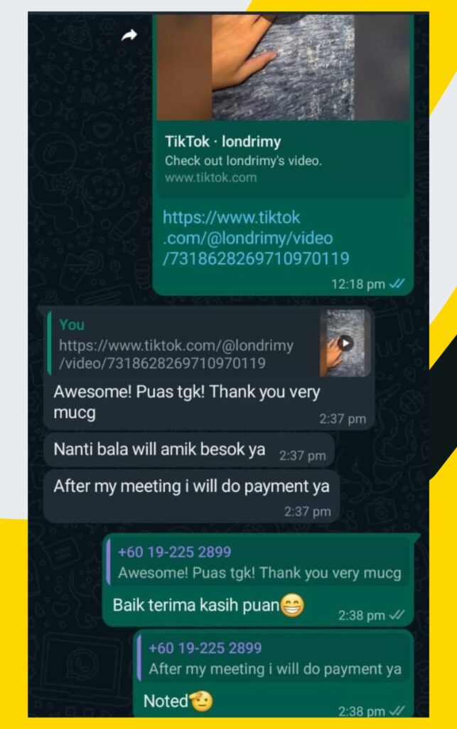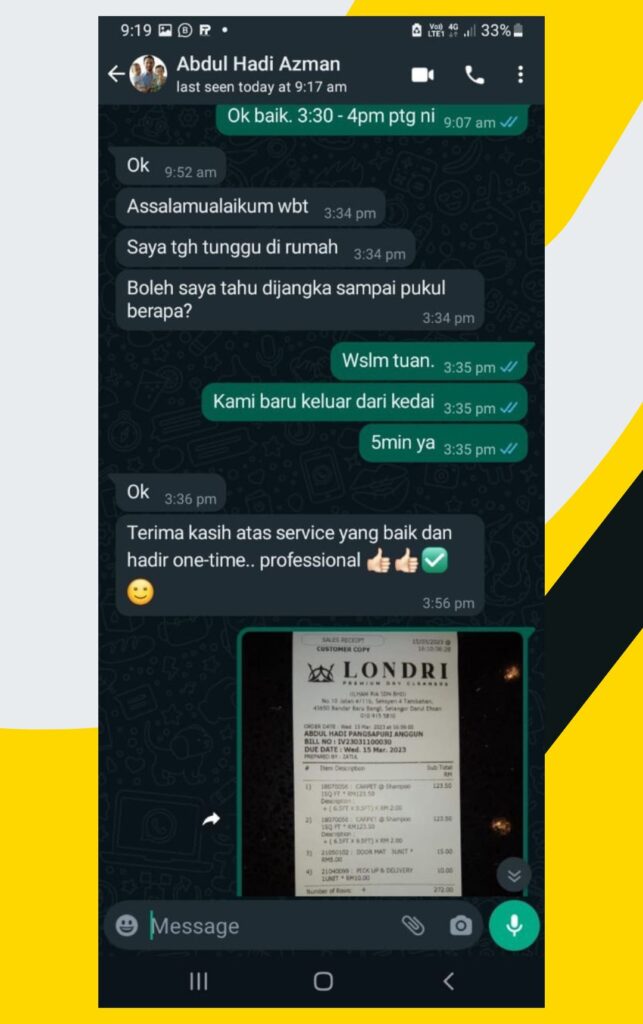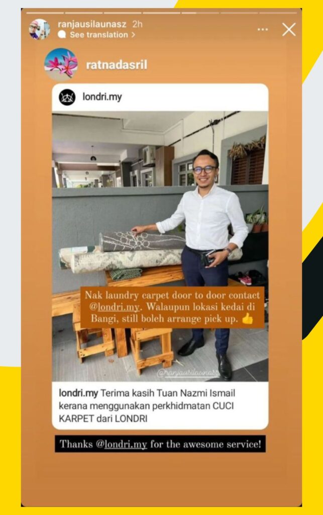 Londri juga berpengalaman selama 10 tahun dalam perbersihan karpet rumah dan masjid.